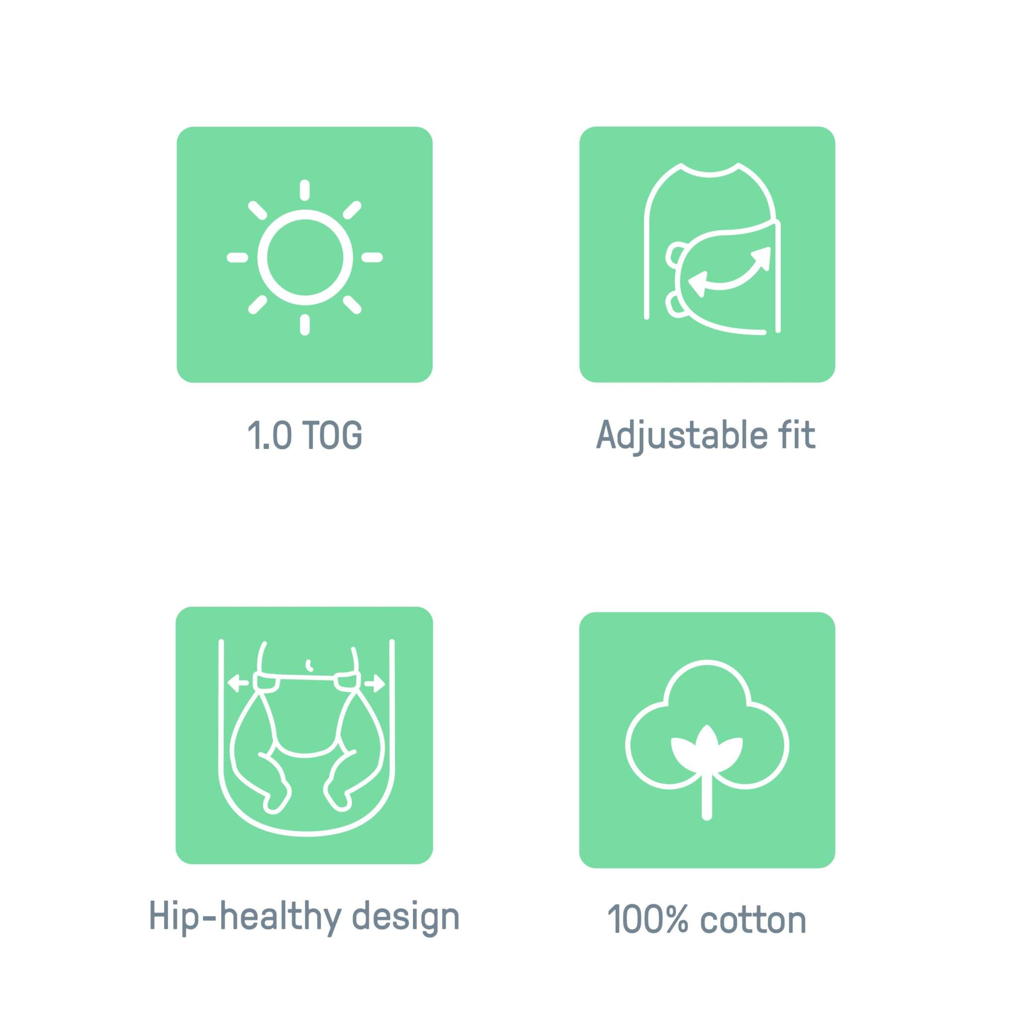 • This soft and cozy swaddle is made of durable natural fiber (100% cotton) and is machine washable with a snug fit helps prevent the startle reflex; Oeko-Tex certified, 1.0 TOG