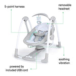 ConvertMe Swing-2-Seat portable baby swing and seat by Ingenuity with foldable design, vibrations, melodies, and plush toy.