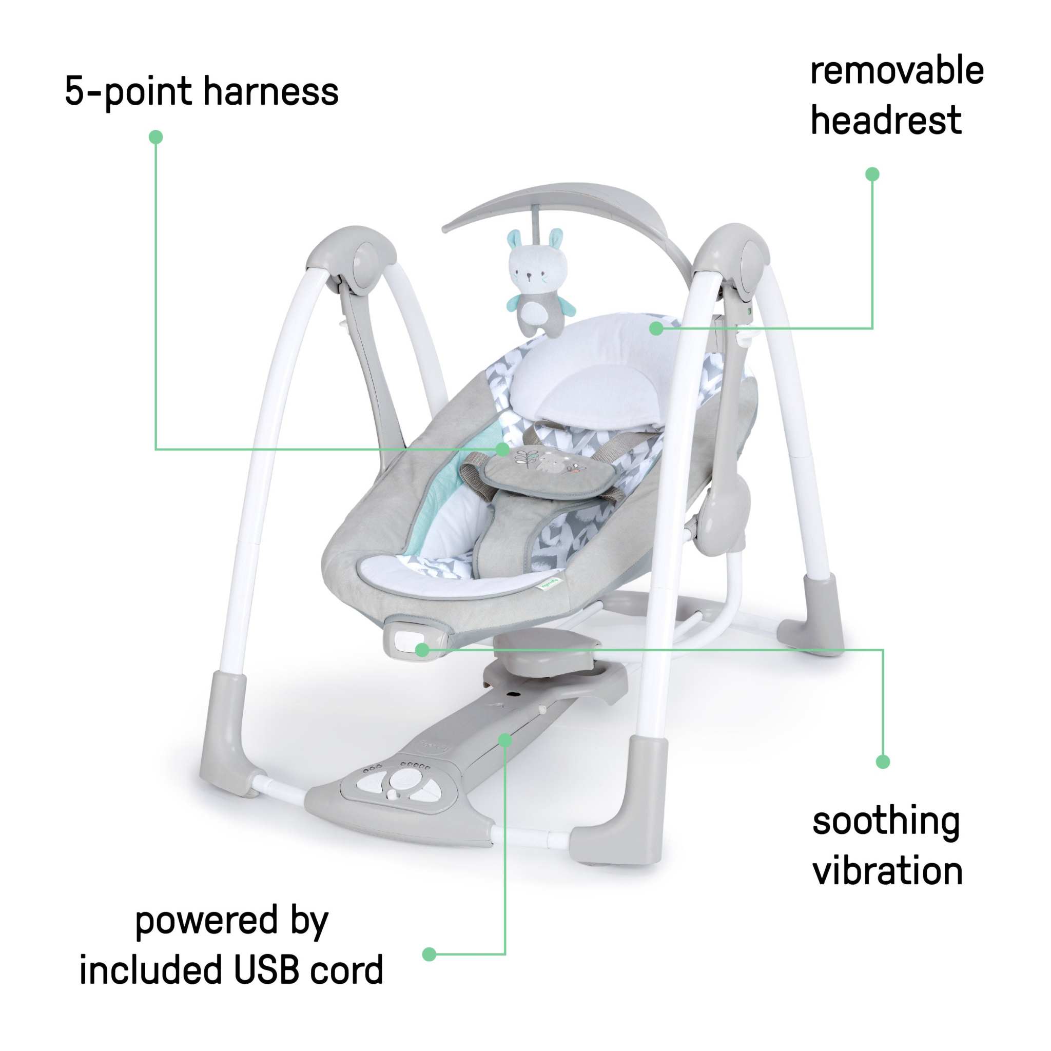 ConvertMe Swing-2-Seat portable baby swing and seat with foldable design and plush bear toy