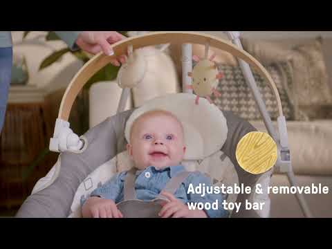• Entertain baby while complementing your home décor with the Ingenuity SimpleComfort Compact Soothing Swing - Parker! The rotating and removable toy bar - made with wood from a sustainable forest - adds a touch of luxe detail