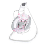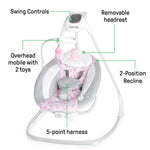 Ingenuity SimpleComfort Compact Soothing Swing Cassidy with multi-directional 180-degree rotation and plush toys