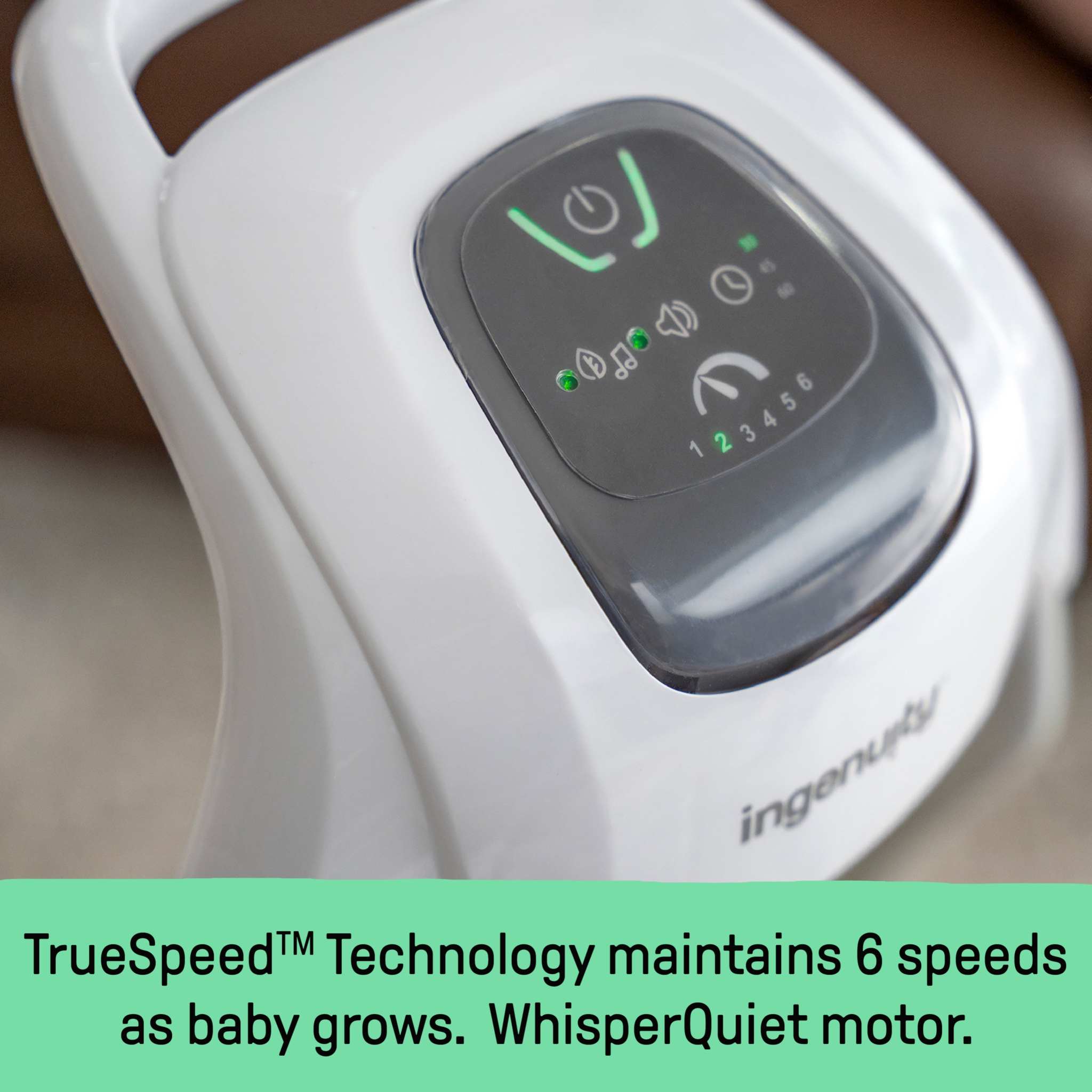 • TrueSpeed technology maintains 6 speeds as baby grows; WhisperQuiet motor for peaceful swinging experiences; Parents can control the swing with timer settings and auto-shut off features