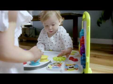Inspire your child's curiosity with Baby Einstein's Curiosity Table Activity Station. From removable, spinning gears to color-discovery circuits and flashing lights, this two-sided art and science table will capture your little one's attention for hours. Made for hands-on learning and inspired by Montessori principles, this table introduces Science, Technology, Engineering, Art, and Math (STEAM) concepts through engaging play. Watch as the gears connect to make the light bulb turn on! Experiment with color using the mess-free "paint pots." Your little one will love investigating all the gadgets on this double-sided table that grows with baby from crawling to walking and beyond. Discover 65+ melodies and vocabulary in English, Spanish or French (with volume control high/low/off). Removable middle art panel can also be attached to the end of the table to make more space for baby's arts and crafts. Easily convert the table for floor play by removing table legs. A drawing art surface and a dry erase whiteboard leave plenty of room for big brother or sister to join in on the fun too. Pull up a seat - this play station is fun for parents, too. From the #1 Manufacturer of Baby Toys*, Baby Entertainment*, and Infant Toys* (*Circana, US Dollar Sales, Jan-Dec ‘24)
