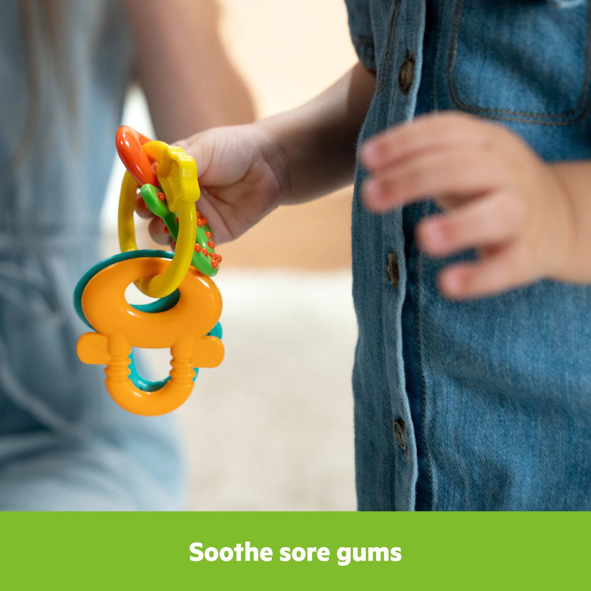 • License to Drool: Finally, the keys to soothing your little teether! Multiple textures give teething relief and the key shapes and key ring make it easy for an infant to hold this teething toy.