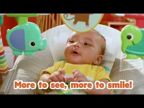 Turn your living room into a paradise of playtime with the Playful Paradise Vibrating Baby Bouncer from Bright Starts. This bouncy seat helps your curious kiddo play and practice motor skills. The silly monkey and friends will spin up sweet smiles as baby reaches to bat and spin the tropical toys hanging from above. Peek-a-boo… I spy a baby-safe mirror on the other side of the spinning monkey! Introduce baby to their own reflection with this surprise & delight toy. A deep comfortable seat, non-slip feet and a 3-point harness make this baby bouncer a safe spot for playtime. That means you have more hands-free moments with baby securely seated in view. Help keep baby calm and content with the bouncy seat’s soothing vibrations. Easily remove the toy bar with one hand when you need to scoop up your baby after playtime. When you're on the move, simply lift on each side when baby is not in the bouncer to move from room to room.