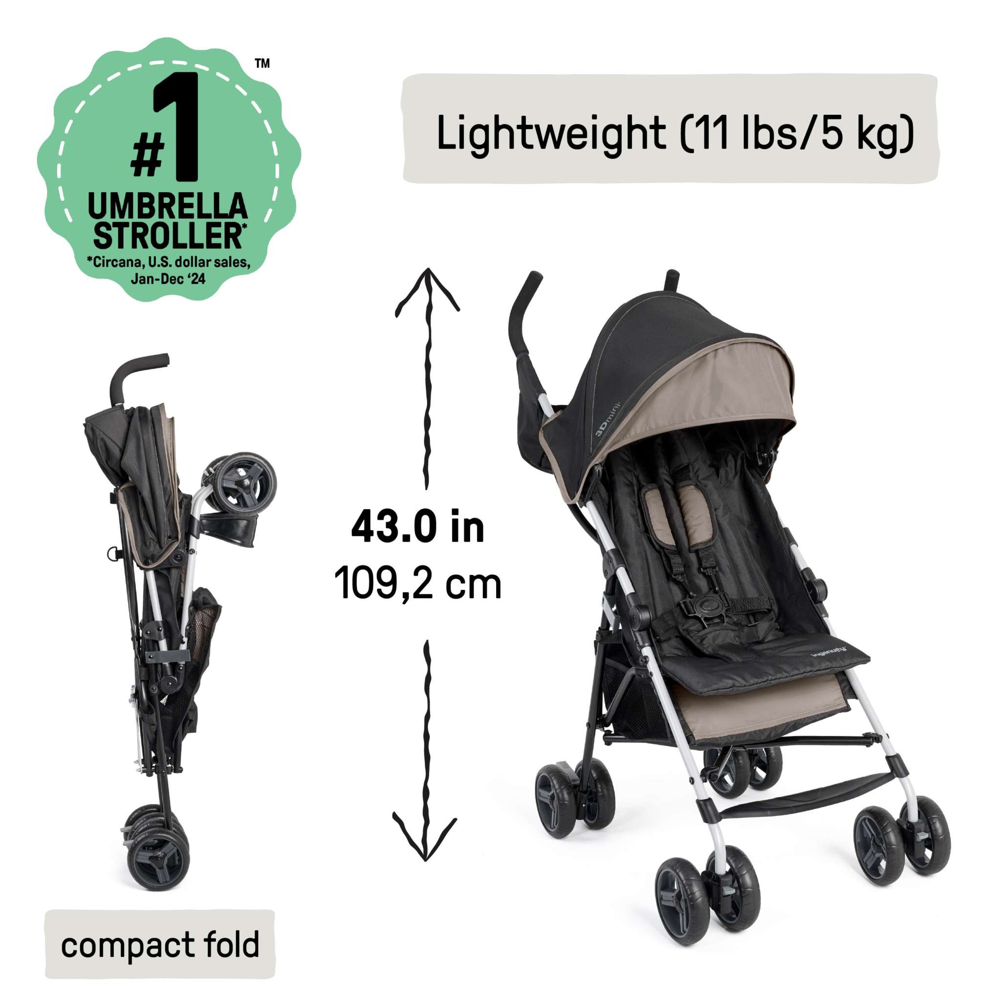 The Ingenuity 3D Mini Convenience Stroller is mini, but mighty. Built for long-term use and full of premium features for both parents and their little ones—whatever your day has in store. This convenience stroller has a durable, lightweight, and stylish steel frame that weighs only 11 pounds. With a compact, easy-to-fold frame, you can run errands, travel, or stow and go with ease. Some of the parent-friendly features in this lightweight stroller include: 2 cup holders, a storage pouch, storage basket, auto-lock, anti-shock front wheels, lockable rear wheels, and more. The comfort features for baby include: a full-sized seat, multi-position recline & padded seat back, hassle-free canopy with pop out sun visor, padded 5-point safety harness, and more. #1 Umbrella Stroller* (*Circana, LLC, Retail Tracking Service, US, Strollers, Umbrella, Dollar Sales, January – December 2024).