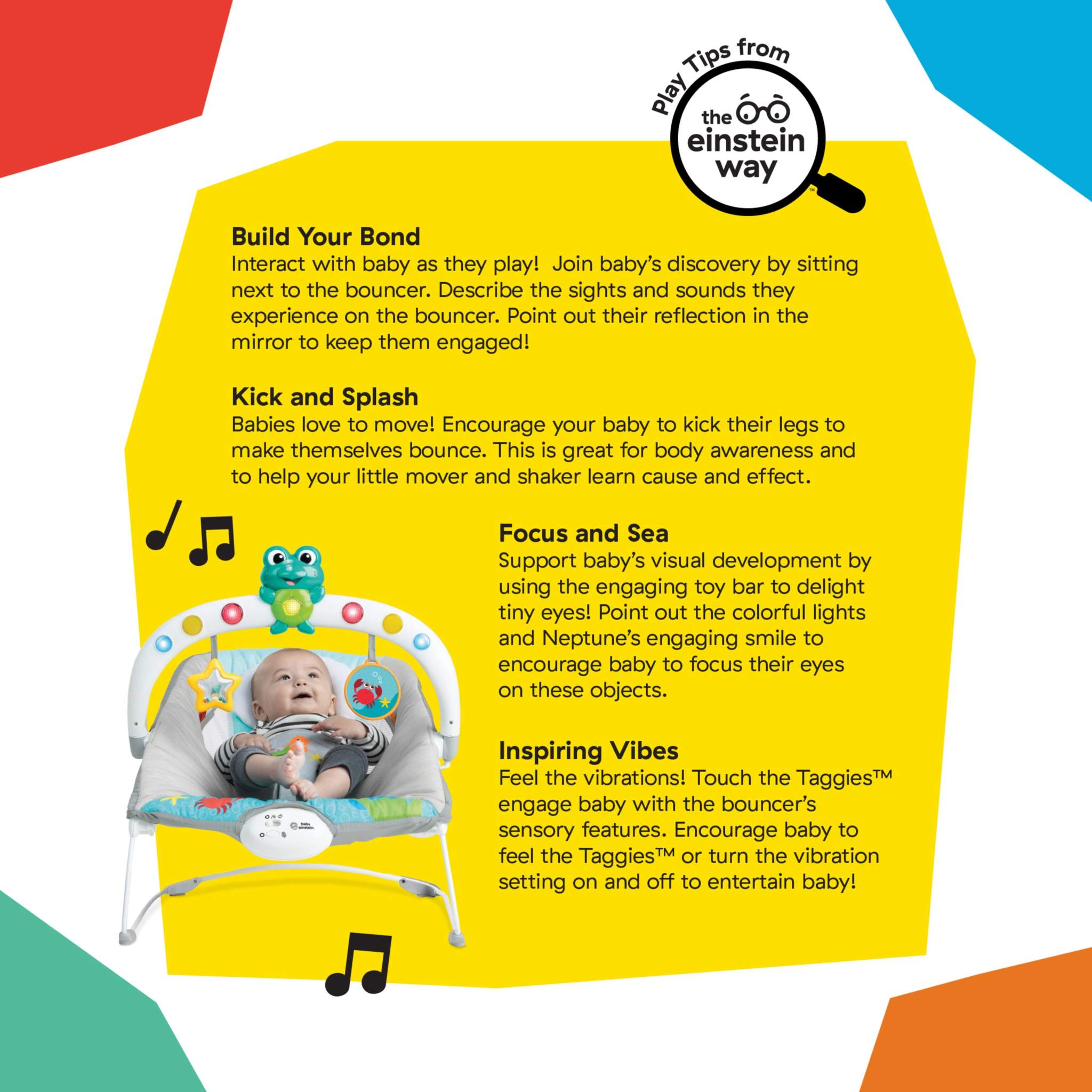 • Includes expert-developed Einstein Way Play Tips to inspire curiosity and foster purposeful parent-baby playtime.